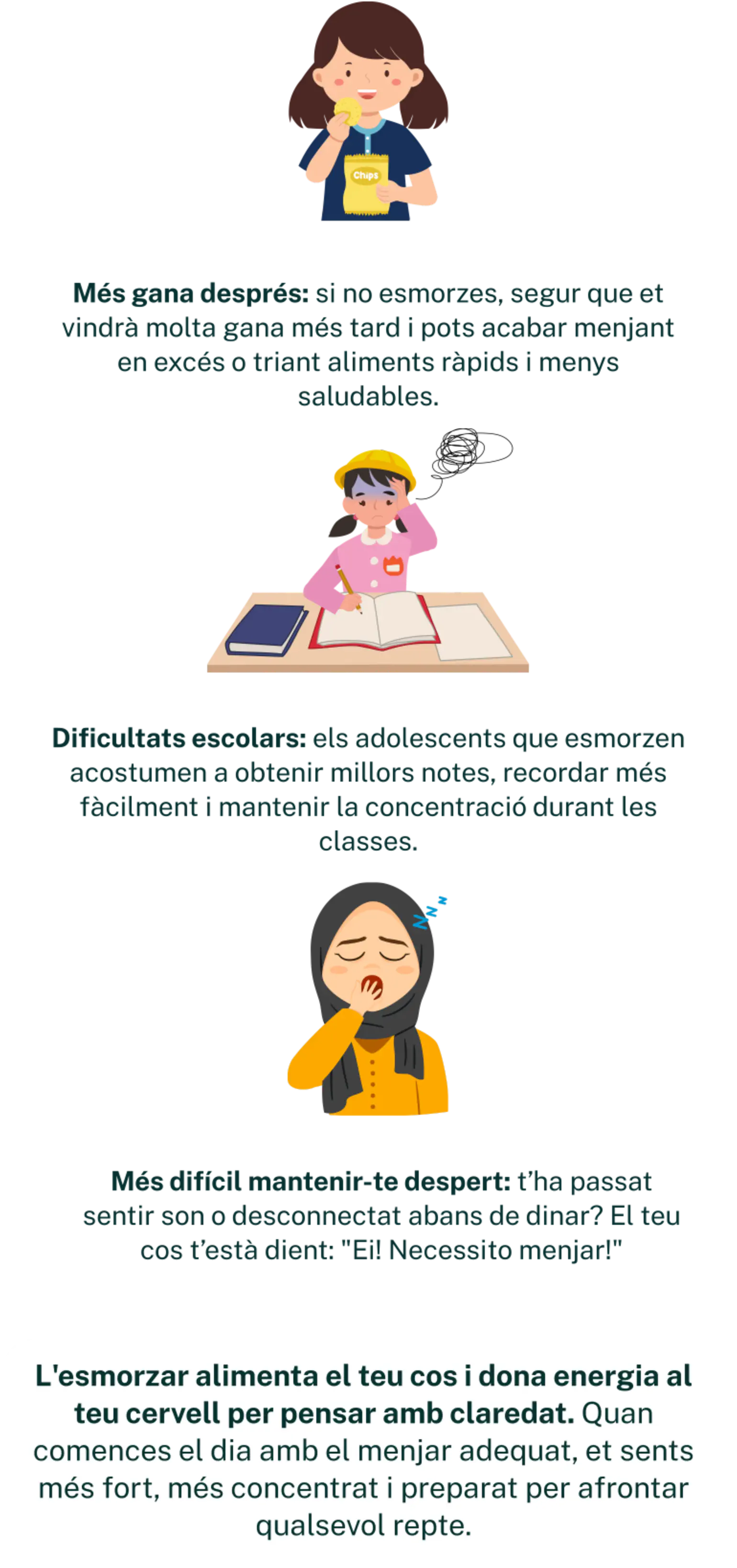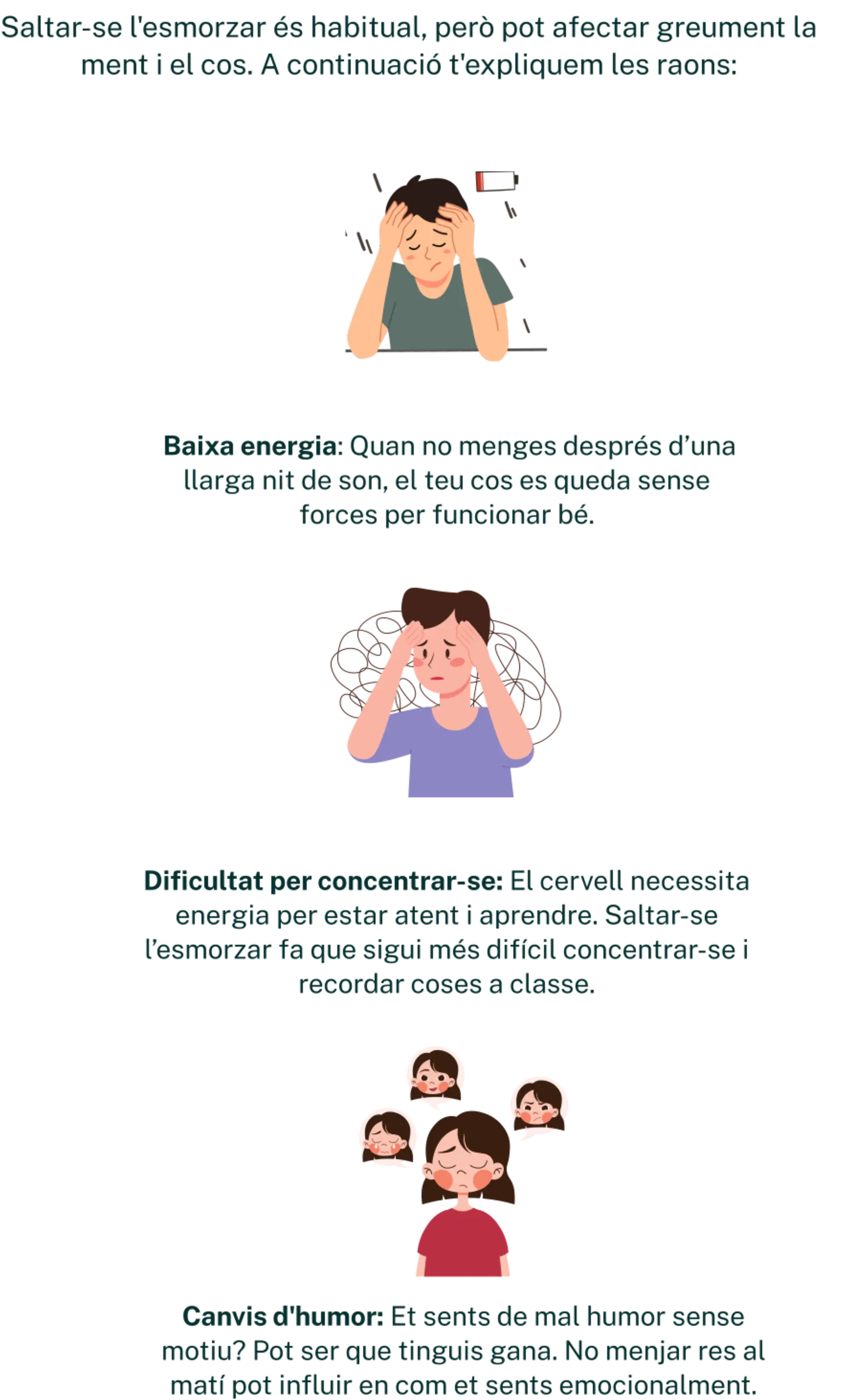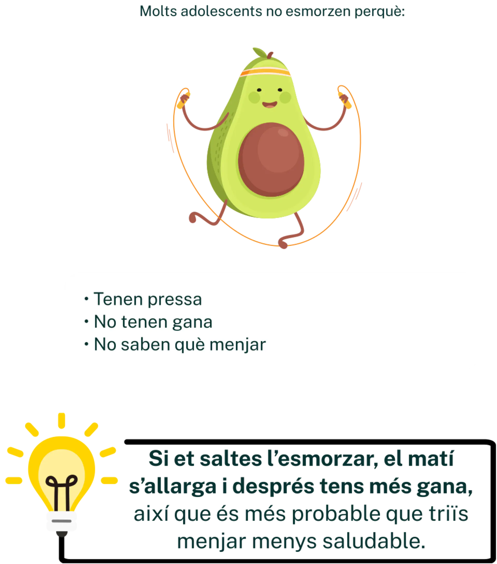 L’esmorzar no és només un àpat, és el combustible que el cervell i el cos necessiten per despertar-se, concentrar-se i rendir al màxim. Per als adolescents, començar el dia amb un bon esmorzar significa tenir millor estat d’ànim, més energia i més facilitat per concentrar-se. Descobreix com convertir l’esmorzar en un hàbit saludable que s’adapti a tu!