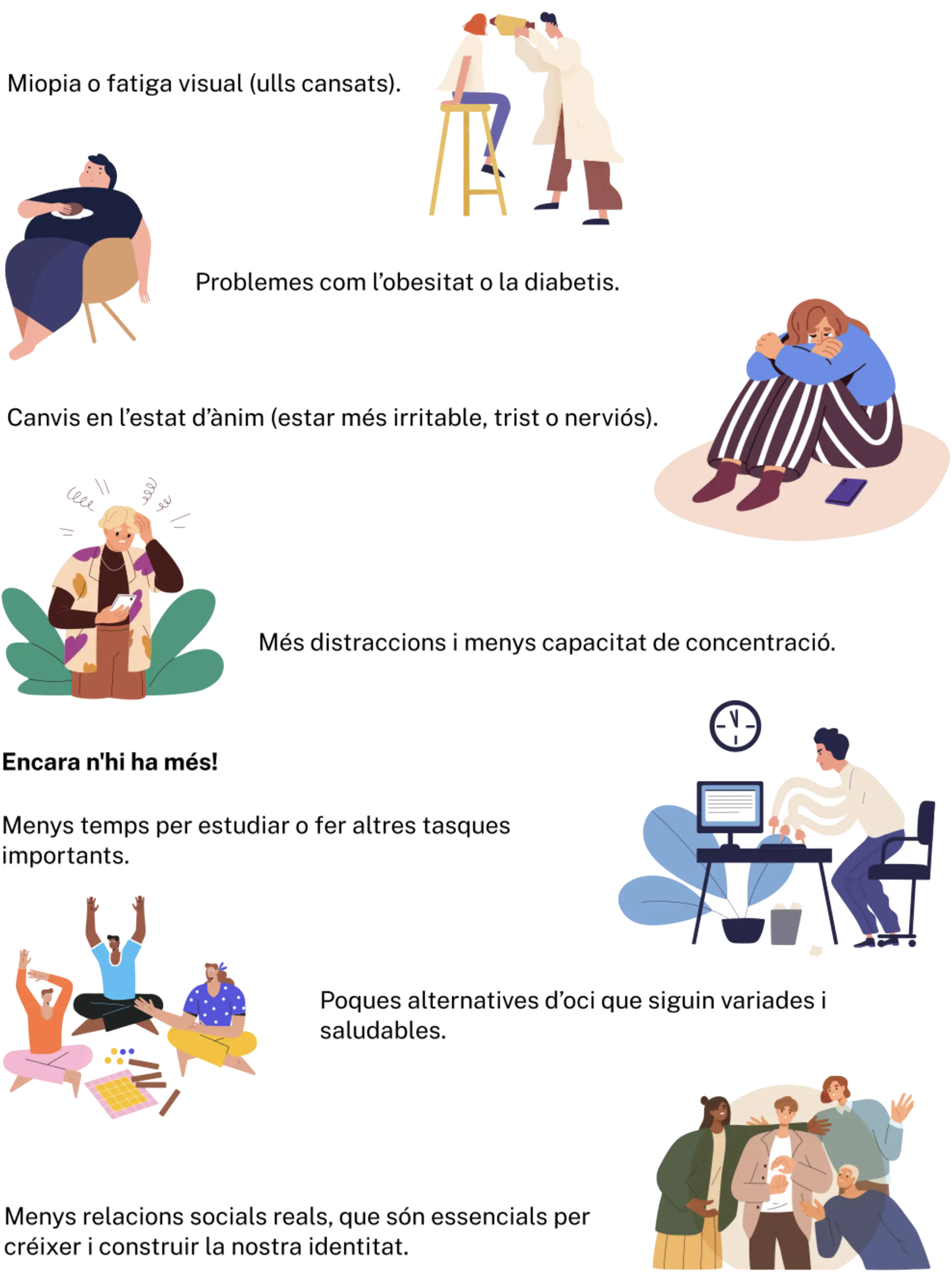 Per exemple, passar massa temps davant de pantalles per pur entreteniment pot provocar: