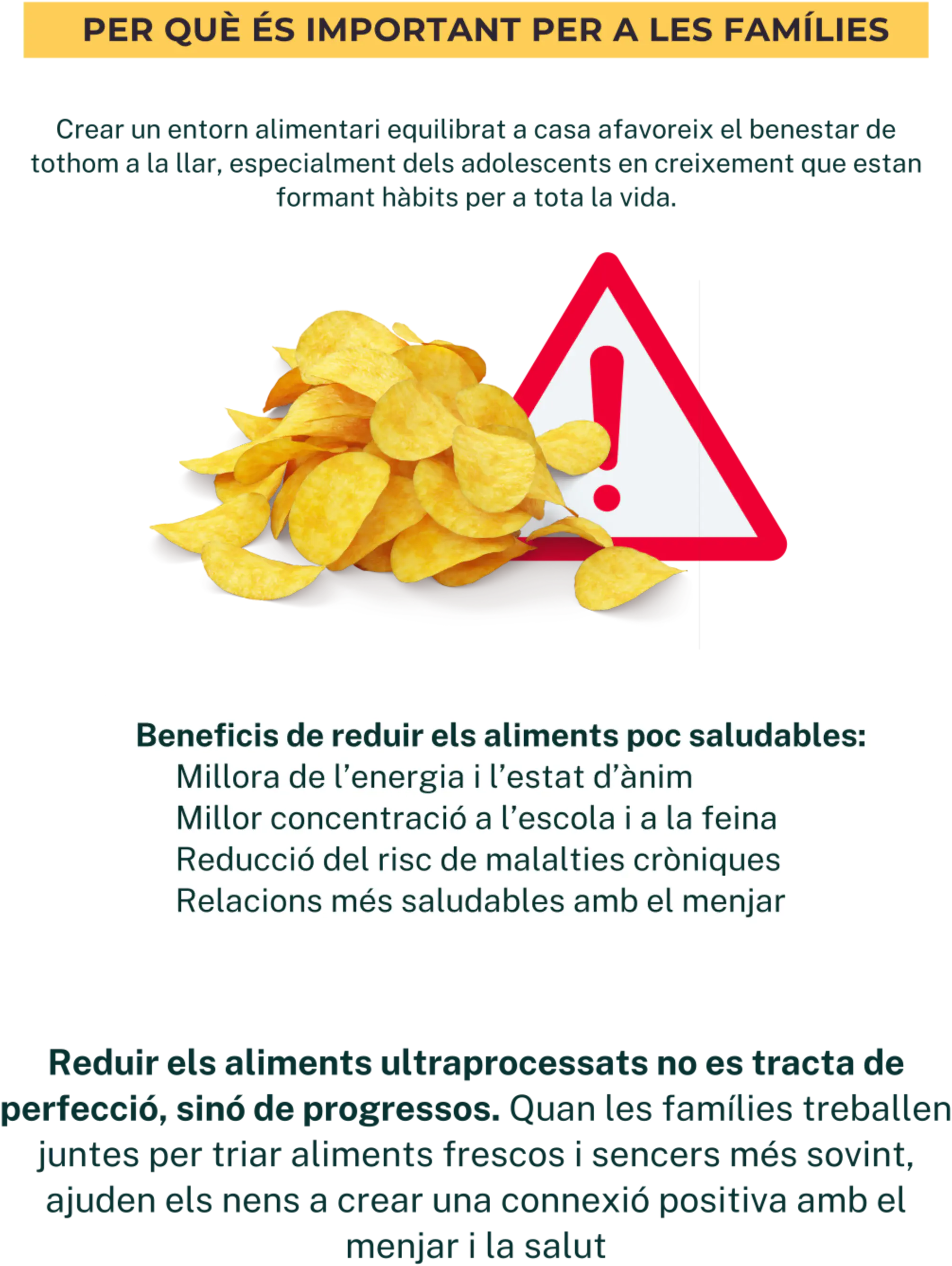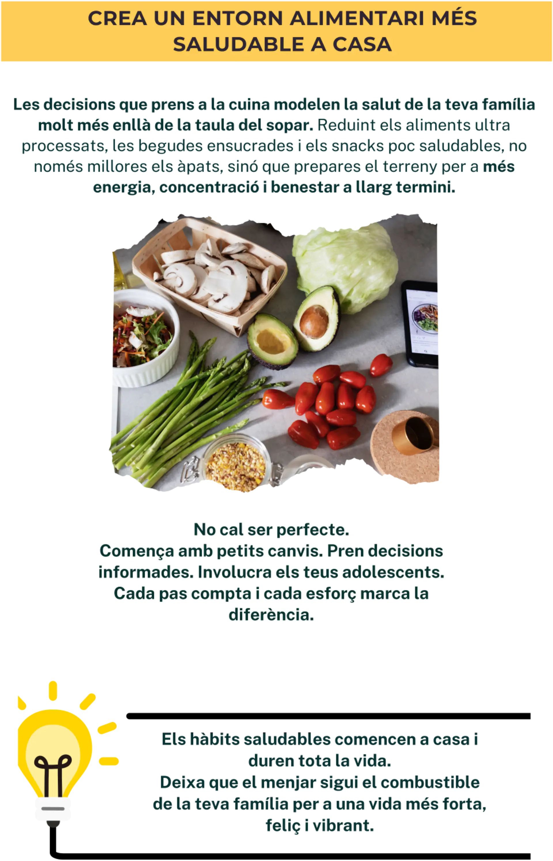 Les eleccions alimentàries que fem com a família configuren la nostra salut a llarg termini. Tot i que la conveniència sovint és necessària en famílies amb ritmes de vida accelerats, alguns aliments comuns — especialment els ultraprocessats — poden tenir impactes greus en la salut física i mental tant dels adolescents com dels adults.