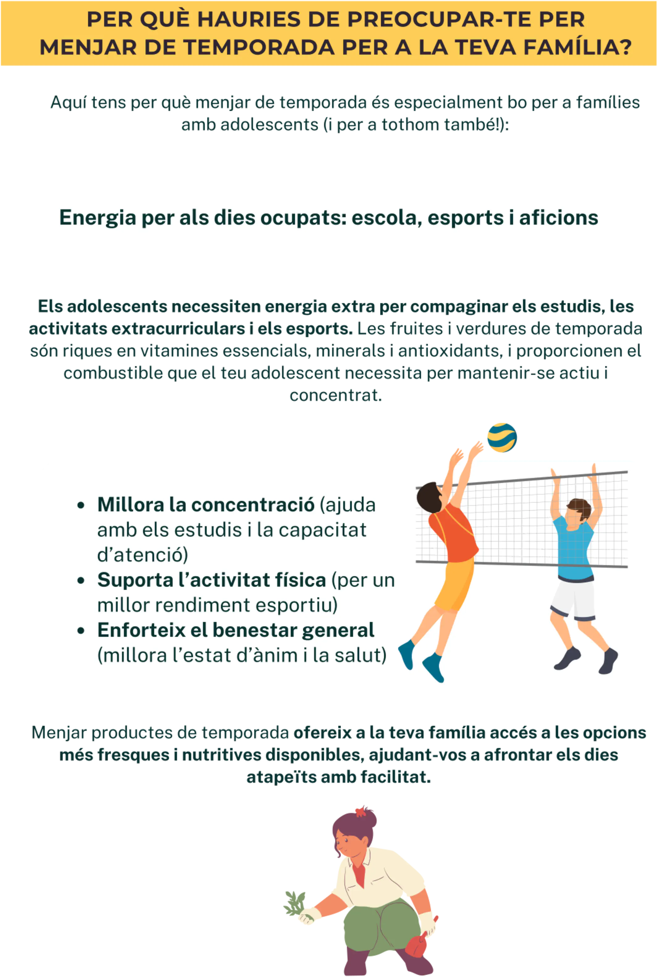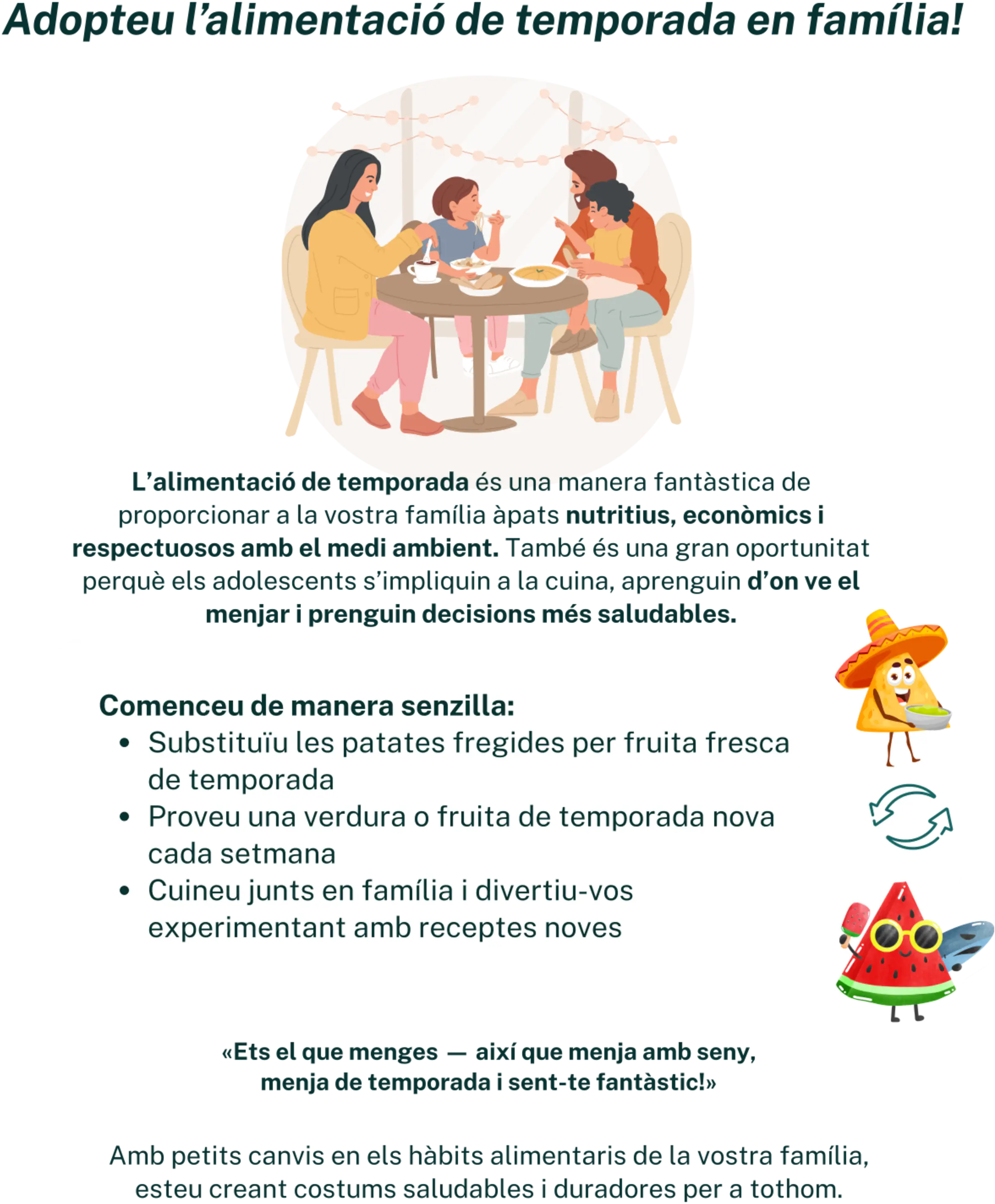 Per a les famílies amb adolescents, la idea de menjar de temporada és una manera excel·lent de garantir que els àpats siguin no només nutritius, sinó també deliciosos, assequibles i divertits!
